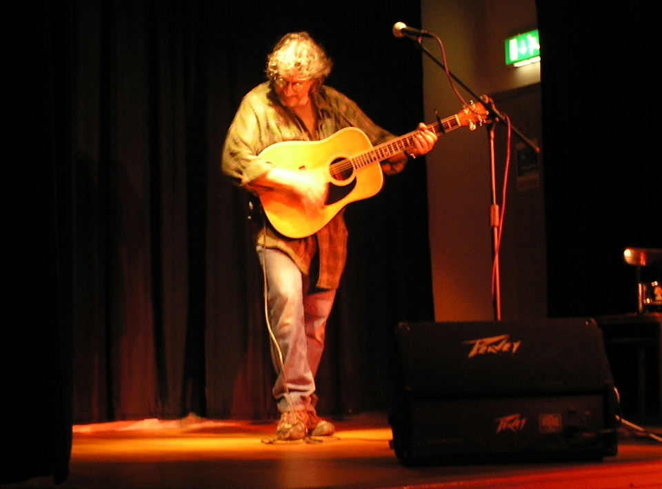 There should be a government health warning printed on each ticket to a Harvey Andrews gig that reads: Warning, drink coffee or eat chocolate at your peril and as for not turning off your mobile phone. Harvey is from the ‘old headmasters’ school of entertainers, where you feel you have to sit up straight, keep your mouth shut, speak when you’re spoken to and put your hands up when asked to do so. His fans love it. His overtly ‘grumpy old man’ persona is forgivable simply because he has a warm nature and a big smile. He can also write some good songs and often does. His sell-out appearance at the Monday Music Club at The Regent tonight brought together a capacity crowd of fans, most of whom probably remember him from his earlier days. They came along to hear songs like “Gift of a Brand New Day” and “Boothferry Bridge”, and in all fairness, they heard those songs as if it was indeed the Seventies, for Harvey has changed little over the years. His voice is still as clear and sweet as ever and his easy on the ear alternating bass finger picking style of guitar accompaniment remains the same as it’s always been. A highly prolific songwriter, Harvey has been singing in clubs all over the world for the best part of 43 years and much of his current repertoire centres around approaching his twilight years, with songs of a simpler time; elderly siblings reunited in “Grain of Sand” or pure nostalgia in songs like “When I Was a Boy” and “Cheeky Young Lad”. It’s not all wine and roses though, as he touches upon unhappier moments like broken marriages for instance in “I Didn’t Get the House”. Having once been a writer of what could be described as ‘protest songs’ Harvey now appears to be more concerned with the process of growing old. The introduction of a brand new song “Moon Over Callow” seems to be a touching meditation on ordinary suburban life, afternoon tea and a chat with the neighbours over the garden fence, and how well the shrubs and trees are looking at the moment. Not only a ‘writer of songs’ but now also a writer of books it seems, as he read out an amusing passage from his autobiography “Gold Star to the Ozarks”. Harvey stopped singing songs like “Soldier” and “Targets” presumably because they don’t seem to be relevant anymore. Even after a song like “Living in an Ugly World”, to which a brilliantly timed police siren sounded off midway, Harvey confesses that on the contrary, he believes we live in a beautiful world. “The problem though, is human beings”.