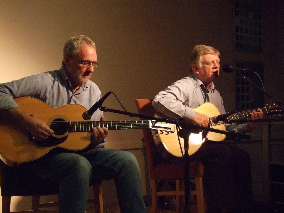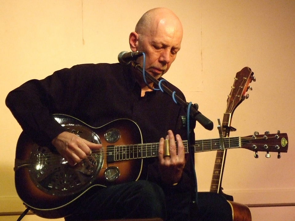 Standing in for Dave Burland at short notice at The Regent tonight was a bunch of friends who were only too willing to help out under the sad circumstances. I’m sure that everyone associated with the club would like to wish Dave all the very best through this difficult time. Roy Machin is one of South Yorkshire’s best kept secrets. I think he probably sees himself as a consistently reliable support artist to anyone of any merit visiting town, but we all know differently don’t we? Roy has one of the most distinctive voices in the country and an eclectic taste that could rival that of Ry Cooder and should in all fairness be selling out concert halls. There’s nothing awkward about Roy Machin and his regular partner Mike Miller (guitar and dobro) when they get up and play. Once they settle into their set, you cannot help but fall back into your seat and relax for an hour, whatever kind of day you’ve had. Tonight at the Regent, Roy and Mike cherry picked songs from such diverse sources as Townes Van Zandt “Poncho and Lefty”, Danny O’Keefe “Good Time Charlie’s Got The Blues”, The Andrews Sisters “Wing and a Prayer” and Bob Dylan “Living the Blues”, to name but a few. Roy has always demonstrated his ability to transport his audience back in time and evoke the atmosphere of a different era entirely, whether it be post war American blues, Fifties country music or the pop tunes of the Sixties and Seventies. Where he differs from most of his contemporaries though, is when he allows his eclecticism to wander into the realms of almost forgotten territory. Tonight the duo were in the mood for making whoopee, which featured not only in Gus Kahn’s original “Making Whoopee”, but also in Jimmy Rodgers and Clayton McMichen’s “Peach Pickin Time in Georgia” and also in the brilliant “My Canary Has Circles Under His Eyes”, a curious song from the repertoires of just about everybody from Debroy Summers and Sophie Tucker to the late George Melly, via Al Bowlly and The Waldorfians along the way. It wouldn’t be right to conclude this review without mentioning the support for tonight’s gig, although in truth, the entire evening was a collaborative effort by friends of Dave Burland. Bob Chiswick opened the night with a couple of his own songs including the excellent “Mystified” before handing the stage over to regular Regent ‘performer and surrealist raconteur’ John Law who was accompanied tonight by Paul on dobro. John’s lived-in voice and uncomplicated guitar style make it easy for him to pick and choose from a wealth of Whistle Test-era songs from the likes of Tom Waits “Heart Attack and Vine” and Steve Winwood “Back in the High Life Again” to classic Leadbelly fare “Bourgeois Blues”. Rounding off what turned out to be an excellent night at The Regent, Ray Banks brought to life a few old timey fiddle tunes on his trusty banjo accompanied by Mike Miller on guitar.