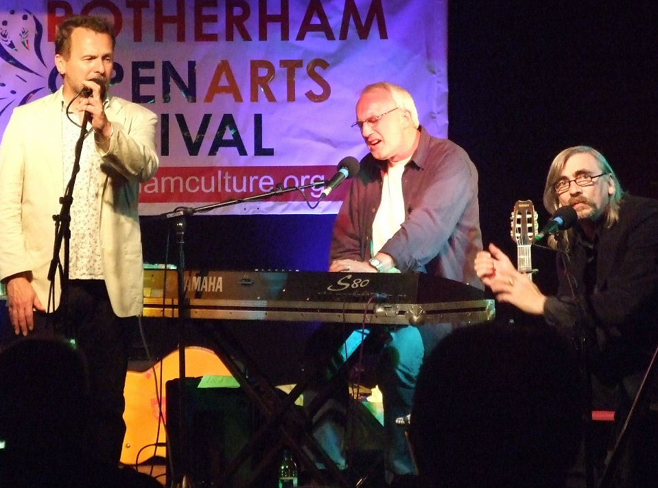There is at the moment a strange exotic Baroque construction right in the heart of Rotherham town centre, standing in the shadow of the imposing Minster. The sight of this strange pavilion has been attracting curious onlookers, both young and old alike throughout the week, and this evening there are sublime sounds coming from within. Sitting on one of the benches in All Saints Square, whilst munching away on a rather tasty Subway sandwich and inadvertently attracting a couple of local pigeons, I feel like I am the only person on earth who has the pleasure of hearing these perfectly harmonious voices, coming not from the Minster itself, as part of a Sunday evenings’ service, but from within this strange temporary construction before me. “What is it?” enquire the pigeons. Why it’s the Idolize Spiegeltent I reply. “And what’s that sound?” Ah, now that would be messers Coope, Boyes and Simpson, sound checking for what could turn out to be one of the highlights of this years folk calendar. For this part of the Rotherham Open Arts Festival, Martin Simpson was asked to come up with an exciting programme entitled ‘Local Heroes’ requesting the pleasure of the company of some of his favourite local singers and musicians on the current folk scene. The programme consists of two nights of folk music and tonight Simpson has chosen wisely methinks. Bringing together one of the countries finest singers in John Tams, together with Barry Coope, Jim Boyes and Lester Simpson, who clearly have three of the most compatible voices on the planet, specifically to share the stage with one of the most extraordinary virtuoso guitarists in the country, left me wondering why it took so long to happen. Upon entering the Spiegeltent, you feel a very distinct otherworldly ambience. Ornate cherubs play seriously disconcerting games upon the constructions’ main supports, whilst plush upholstered seating in decadent crimson and gold give the impression of a turn of the century Parisian boudoir that Louis XVI would’ve been proud of. If Nicole Kidman was to swing above your head whilst Ewan Macgregor warbled “Your Song” you wouldn’t even bat an eyelid. The evening concert consisted of two sets featuring Martin Simpson (solo), John Tams and Barry Coope (duo), Coope, Boyes and Simpson (trio) and finally a quintet that must’ve been made, if not smack bang in the middle of, then surely not far from Heaven. Martin opened the show with a couple of guitar pieces entitled “She Slips Away” and “Mother Love” before segueing into “Little Musgrave” from his new and much talked about album Prodigal Son. Twenty albums on from the time when the young son of Scunthorpe used to travel up and down the country, green guitar in hand and cheeky grin on his face, dazzling folks from all around with his unique and highly polished guitar style, I can confirm that after witnessing his new album launch at this years’ Cambridge Folk Festival, sharing the stage with Danny Thompson, Kate Rusby, Kellie While and Andy Cutting, he is still very much ‘The Man’. Martin is also a generous musician who can stand back from the spotlight in order to allow others to take centre stage. This is all about respect. In the case of tonight, he let John Tams, one of our most enigmatic performers, take over the stage. With Barry Coope at his side, John delighted the Rotherham audience with songs new and old including “Lay Me Low”, “Amelia” and “Will I See Thee More”. There is a warmth to John Tams that cannot be contrived. He is a passionate performer with a very English, very northern sense of dignity. You simply cannot leave his presence without being touched by it. He also has a unique way of making you giggle without any seemingly planned stage patter. His observations on life just come naturally. Coope, Boyes and Simpson came on next to raise the roof with, curiously enough, “Raising the Rafters”, which tested the audience’s communal singing credentials. Barry Coope in all fairness was suffering from the sniffles and I suspect he probably felt he wasn’t on top form, but we the audience couldn’t tell. He probably just worked harder than anyone tonight to cover it up. The trio finished the first part of the concert with “Horkstow Grange”, the song that features a character called ‘Steeleye Span’ from which a very well known folk rock outfit took their name. The second part of the evening was a fine collaborative effort for all concerned when all five musicians came together to form, for the sake of argument, Coope, Boyes, Simpsons and Tams. Songs from both sides of the Atlantic were chosen to represent this second half, with Hedy West’s “Pans of Biscuits”, one of the most common choices of funeral songs “Didn’t He Ramble”, Richard Thompson’s “Down Where the Drunkards Roll” and a couple from John Tams’ current repertoire “Remembrance Day” and “Harry Stone”. Martin Simpson led with a Cyril Tawny song from his Bramble Briar album “Sammy’s Bar” before allowing John Tams to finish the set with a rousing airing of “Vulcan and Lucifer” and “Steelos” from the Radio Ballads series, and incidentally, from the Radio Ballad that is closest to our hearts, particularly in this neck of the woods, The Song of Steel. The first of these two ‘Local Heroes’ concerts was brought to a close with the help of the enthusiastic audience. As the sleepy All Saints Square pigeons nestled into the nooks and niches of Rotherham Minster, peering in through the green and blue tinted skylights of the Spiegeltent, the final chorus of “Rolling Home” could be heard down the streets of Rotherham on what turned out to be a fine warm summers’ evening. As part of the Rotherham Open Arts Festival, a group of talented local musicians congregated for the first of two afternooon concerts, under the banner of the ‘Real Music Bar’, run by Pete Thornton-Smith (MC). The first of these