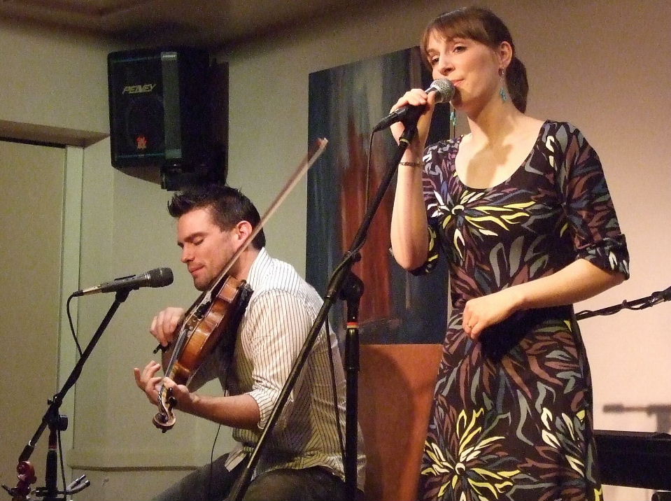 Believe it or not, Nancy Kerr and James Fagan have been working together as a duo on the folk scene for twelve years now and in that time they have managed to make several albums, walk away with the Horizon Award at the BBC Radio 2 Folk Awards in 2003, tour extensively throughout the world and make plenty of friends along the way. And if that wasn’t enough, they have found time to make what we all believed to be a ‘marriage made in heaven’ become a reality by tying the knot to become hubby and wife for real and as they say, ‘jobs a good ‘un’. Tonight at The Rock, armed with a couple of fiddles and an eight string Stefan Sobell guitar shaped bouzouki, the duo performed several of their finely arranged songs and tunes to a delighted audience in Maltby, near Rotherham. Playing two sets to a healthy sized audience, Nancy and James performed several songs, some traditional, some contemporary, some old, some new, some borrowed and some blue; and so ends any further reference to marriage from this point on. Nancy and James appear to live and breathe their craft. They talk fluently about all aspects of traditional folk music and seem to absorb sponge-like all the influences made available to them. This is in no small part due to their celebrated lineage; Nancy’s parents being the much loved singer Sandra Kerr and Northumbrian piper Ron Elliott and James hailing from the popular Australian family folk band that is ‘The Fagans’. In the past twelve years, the couple have absorbed each others culture and traditions and in particular, the indigenous songs and ballads from both sides of the planet. Somewhere along the way, Nancy has developed an antipodean vernacular in much the same way Cath Mundy ‘rubbed off’ on Jay Turner. This isn’t a bad thing, this is evolution. The songs that evolve from such partnerships are an important part of traditional music, and I suppose in some small way, part of the make up of World Music in general. Taking parts of old English ballads and transforming them into something new, with a more Anglo/Australian emphasis, can only be a good thing. There is something of the gypsy about Nancy Kerr, both in her appearance and in her fluid fiddle playing. Opening tonight with a gypsy-style fiddle tune, together with one of the many traditional songs on the theme of the “American Stranger”, Nancy plucked and scraped in such a fashion as would have you swear there were two fiddles involved. Having cleverly detected that her second fiddle was still in its case and that James was standing stage-right with nothing but a bouzouki in his hands, I could only assume she was doing it all by herself. Adding to the delightfully enigmatic background that Nancy and James come from, it is without any surprise that the couple have been known to allow a film crew into their home – a narrow boat on the Kennet and Avon canal near Bath no less – to talk about anything from the evolution of fiddles and bouzoukis in traditional music, to the DNA of folk songs. It is with such a passion for this music that the couple live their lives, that it is impossible not to be informed by it, or equally touched by it at the same time. In “Barbara Allen”, one of the most popular of all ballads, Nancy adds her own composition “April Friend” not just as a song tagged onto the end, but interwoven, like inextricably clasped hands, and in doing so, breathes new life into an old song. The same was attempted with Iris Dement’s “Let the Mystery Be” and Joe Hill’s “Pie in the Sky” but possibly not with such a great impact as the first coupling. When you hear artists of the calibre of Nancy and James perform songs by Alistair Hulett and Jez Lowe, you are reminded once again of the remarkable contribution that these two writers have given to folk music. Their songs are obviously contemporary but have a quality that is timeless. Hulett’s “The Sons of Liberty” from Nancy and James’ latest CD Strands of Gold and Jez Lowe’s “The Bergen” are typical of this style of song writing and give the impression both in lyric and in melody, of being much older than they actually are, yet still remain fresh and accessible. The epic “Jack Orion” has lost nothing of its raw power since its first appearance on the couple’s 1998 CD Starry Gazy Pie. With a nod to those whose efforts of keeping this song alive, most notably Bert Jansch, the couple launched into an exciting, table thumping, foot stomping version of the old Child ballad like there was no tomorrow. Level pegging on the string count thus far, Nancy strove ahead of the race by producing an autoharp (presumably Australian, due to the sound hole being in the shape of that country) for their arrangement of “Allan Tyne of Harrow”. There is something endearing about a musical instrument that has to be cuddled whilst being played and which lends itself to sensitive arrangements of beautiful songs. How ever hard you try, you just can’t imagine “Pretty Vacant” being played on one. With two songs from both sides of the world completing the set, a Gerry Hallom arrangement of a poem by the Australian poet Henry Lawson in “The Outside Track” and finally a well known song from Nancy’s neck of the woods “Dance to Your Daddy”, with probably more fishy references than is really necessary in a song, the duo rounded off a really great night, being coaxed back onstage for a final set of tunes in the form of “Meggy’s Foot/Coates Hall”.