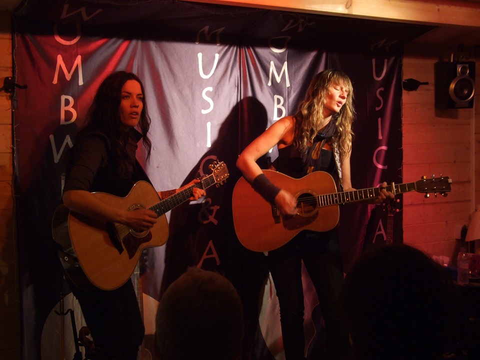The newly extended Wheelhouse in Wombwell opened its doors once again tonight for a sell out appearance by one of Canada’s best loved harmony vocal duos, Madison Violet. The venue itself has been slightly extended, with the addition of an alcove to provide more room, not specifically to cram more people in, but to make the Wheelhouse even more comfortable for the handful of loyal regulars and for those visiting for the first time, including the guest performers of course. Toronto’s Brenley MacEachern and Lisa MacIsaac have been together for just over ten years now and have in that time produced three fine albums, two in the guise of Madviolet Worry the Judge (2004) and Caravan (2006) and for their most recent offering, No Fool for Trying (2009), a name change from Madviolet to the slightly lengthened Madison Violet, due to the confusion arising from their former name and that of a 1980s psychedelic band, The Mad Violets. Tonight, Brenley and Lisa gave a stunning performance, despite some lingering jet lag, with a selection of songs from each of their three albums, together with one or two more familiar songs from the pens of Paul Simon and fellow countryman Gordon Lightfoot. Starting with “The Ransom” from their current album, the duo delighted the audience with their often perfect vocal harmonies, alternating between guitar, mandolin and fiddle (Lisa) and guitar and tenor guitar (Brenley). Those harmony voices first came about purely by accident when the duo was rehearsing together over ten years ago. Brenley discovered that Lisa could in fact sing, by overhearing her harmonising to a pre-recorded looped vocal of hers on a Head Rush looping device. Whilst the singer was upstairs, having left the rehearsal space momentarily, Lisa added her own voice to Brenley’s. Overhearing the two voices together, Brenley discovered that for the first time she loved the sound of her own voice, simply by hearing it being coupled with Lisa’s. The task then was to convince Lisa that she should sing with her. “I had a horrible fear of singing in public” Lisa explained. Those voices now however, are almost inseparable. Holding fellow Canadian singer-songwriter Gordon Lightfoot in reverence, the duo sang two of Lightfoot’s songs during their set, having recently met the man himself and even getting him to sign Brenley’s tenor guitar, which she was proud to show off to the audience tonight. Brenley and Lisa first of all performed Lightfoot’s “Poor Little Allison” and then towards the end of the night, delivered a beautiful rendition of the better known “Sundown”, a minor 1974 hit for Lightfoot in the UK; a number one smash in their native Canada of course. Without doubt the most familiar song of the night however, was the unexpected Paul Simon classic “Mr$s Robinson”, which the duo managed to breathe new life into and I’m pretty sure in doing so, reminded the audience just how great the song actually is when heard once again in its rawest acoustic form. Of all the sad songs that have been drawn from the pens of songwriters throughout my time, not many have touched me quite the same way as “Crying” and “The Woodshop”, both written by Brenley in tribute to her late brother Stevie, who was unfortunately killed two years ago. During the introduction to “The Woodshop”, Brenley explained the relevance of the line ‘dust to dust and ashes fifty-two’, her brother being the fifty-second homicide victim in Toronto in that particular year. The song was rewarded with complete silence throughout, which it fully deserved. Once heard, difficult to shake off. Some of Brenley’s songs do often reveal something of a chaotic life. Once doing rather well for herself working in the graphic arts industry, having all she really needed except that crucial of all ingredients, that of happiness, Brenley gave it all up for music. During that time she has endured the daunting experience of being accused, handcuffed and thrown in a cold cell, whilst being completely innocent of an undisclosed crime. Great songs come from such experiences though and “Baby in the Black and White” has subsequently become one of the most outstanding songs on the new album and also as a live favourite. For the more soulful “Small of My Heart”, Brenley and Lisa invited the Wheelhouse audience to join in on some gospel-like oos, which had the effect of momentarily transforming the packed Wheelhouse into a chapel of sorts, albeit a gospel chapel that serves up some mighty fine Guinness along with the songs, with a little help from regular barman Andy at the back of the room. Lisa comes from a family of fiddle players and the playing of the instrument seems to come naturally to her, certainly as an accompanying instrument to some of the songs performed tonight, but especially in her bluegrass playing as heard on the traditional “Cindy Cindy”, which brought the night to a close. There was of course the obligatory encores, which tonight consisted of the aforementioned “Sundown” and also the jaunty “Never Saw the Ending”, with its foot tapping instrumental fiddle tune coda, courtesy of the enigmatic Lisa MacIsaac. Other songs featured during the night included “Best Part of Your Love”, “Skylight”, the Ron Sexsmith co-write “Sore Heart, Height Ashbury” and the catchy “Men Who Love Women Who Love Men”. Once again, a thoroughly enjoyable and memorable night at the Wheelhouse.
