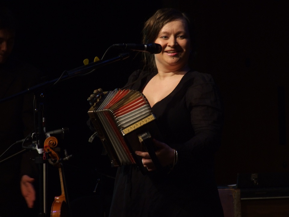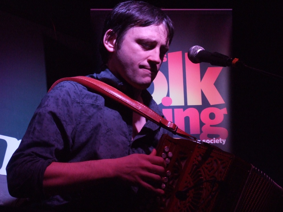 Andy Cutting confessed right from the start tonight that he doesn’t sing, going on to say “well I do, however I would rather you stay than leave”. The prospect then, for a night of instrumental melodeon tunes one after the other may under normal circumstances sound slightly daunting and in some cases that would be perfectly understandable. However, the melodeon in the hands of this particular musician, which he refers to as his ‘funny little machine’, provides a panoramic musical landscape with the ability to take the listener away to similar emotional places that songs do. Avoiding clever pyrotechnics, awkward and busy arrangements, the act of setting fire to his instrument or smashing it against the amp, despite being an honorary member of The Who, Andy Cutting instead sits alone onstage and delivers some of the most beautiful music you are likely to hear anywhere. With a string of highly successful concerts at The Boardwalk, the Bright Phoebus co-operative, namely Kit Bailey, Fay Hield, Lindsay Smith, Jon Boden and Martin Simpson, together with a mammoth list of supporters, has broadened its remit, setting up a monthly concert night at the former Highcliffe Hotel, now re-named The Greystones in the Greystones area of Sheffield, for what could potentially be the premier mid-week musical attraction for the months to come. Tonight, Nancy Kerr was delighted to perform her very first MC duties, whilst Andy Bell made sure everything sounded as good as it possibly could from his position behind the sound desk and Martin Simpson, one of our most respected musicians, was only too happy to look after tonight’s special guest’s CD shop as well as announcing the winners of the obligatory raffle. Such is the sense of comradeship amongst the growing Bright Phoebus community. Nancy started both sets off, first of all accompanying herself on the fiddle with the Northumberland courting song “Gan to the Kye”, which served as a timely antidote to another high profile courtship in the news “that we’re supposed to be interested in” and secondly with the unaccompanied “Morton Bay”. Introducing Andy Cutting to the stage, Nancy affectionately described the musician as both brilliant and ‘eerily youthful’. The sell out concert was populated by an audience who were respectfully silent through the music and deliberately noisy through the applause, which was predictably plentiful. Whilst Andy performed tunes from his back catalogue such as “Incontinental Mood” coupled with “Flat World”, as well as a selection from his recently released eponymously titled debut solo album, such as “Atherfield”, “CEG”, “Charlie/Come Back!” and “Granton Fish Bowl”, the audience divided themselves equally between those with furrowed brows, stroking their chins intent on watching Andy’s every move with great concentration together with those gleefully swaying along to the variety of infectious rhythms, to finally those reclining in their seats, eyes closed, totally relaxed, allowing the music to simply wash over them, temporarily leaving their worldly cares behind. In between each of the tunes, Andy delighted the audience with his stories, everything from his concerns about British bed and breakfasts, especially the cold toast racks and insufficient butter rations, to his beloved dogs and his children. There’s something warm and immediately engaging about Andy Cutting, who speaks to his audience in precisely the same way he might chat to a friend at the bar. This is also testament to the seemingly endless list of musician friends he’s had the pleasure to work with over the years. Andy’s recording credit list is enormous, the celebrated melodeon maestro, named Musician of the Year in 2008 by the BBC in their annual Folk Awards, having worked with everyone from Kate Rusby and June Tabor to Chris Wood and Martin Simpson, by way of the odd foray outside the usual folk sphere, working with both Sting and The Who. From the stage, Martin Simpson was delighted to announce some of the contenders in the BBC Radio 2 Folk Awards tonight, which had just been announced on Mike Harding’s weekly radio programme shortly before the concert. A couple of those nominees were present tonight, Andy once again nominated in the Musician of the Year category and Nancy Kerr nominated twice, firstly in the Best Song category for her song “Queen of Waters”, as well as in the Best Duo category along with husband James Fagan. Martin also announced that Bright Phoebus luminary Fay Hield, not present tonight, was also up for the Horizon award, the news of which was received with great enthusiasm. Towards the end of a stunning second set, which included the jaunty “Annaliese/There Are Angels”, together with “Oliver’s/Two Beers” and the two tunes “Potato/Theatre”, the names of which were inspired by the fact that Ian Carr finds the way Andy pronounces those two words hilarious, Andy invited Nancy Kerr up onstage for a set of tunes, “The Other Side of the World/Adder’s”. With a final solo encore, Andy chose to play the utterly beautiful “Old Light” and “The Abbess”, two tunes that coincidentally close the new album, bringing what could only be described as a stunning evening of extraordinary music to an end.