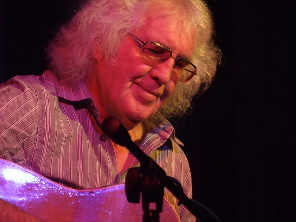 A Wizz Jones performance has probably changed very little over the years and we’re talking fifty years here; still every bit the folk troubadour he always was, relaxed and with an almost encyclopedic knowledge of blues and folk styles, Wizz made his welcomed debut at the Wesley Centre, although he was no stranger to the old place in Wentworth. Removing the old Epiphone he bought second hand in 1967 from its battered case and his more recently acquired banjo, Wizz settled down for a relaxed and intimate performance, suitably aided by the smaller stage that Rob Shaw occasionally erects in front of the much bigger concert stage, for matters of intimacy. Tonight, that small stage was just right for an artist who was in no mood for anything other than a laid back performance, which included such blues and folk classics as “Weeping Willow Blues” and “The Glory of Love”. Although Wizz Jones never quite achieved the same level of recognition as his contemporaries Ralph McTell, Al Stewart and Bert Jansch, his name frequently pops up in indexes of biographies and tonight he regaled us with tales of being frequently contacted for memories of those singers and musicians he either influenced or rubbed shoulders with in the past. “I remember Sandy Denny..” he told one writer, “she was always pissed!” With a nod to some of those contemporaries, Wizz paid tribute to the likes of Davy Graham with “Angi”, Robin Williamson with “Womankind” and also referred to Steve Tilston’s “Some Times in This Life Are Beautiful” as ‘one of his easy ones’, which he went on to play with assured confidence. The two musicians frequently refer to one another at their gigs, which shows a mutual respect. Dylan was also referenced with his take on the timeless “Song to Woody”. Other ‘old favourites’ coming out to play tonight included “Sitting on Top of the World”, “That’s How I Learned To Sing the Blues” and “Keep Your Lamp Trimmed” and “Burning”, blues standards that appear to have stood the test of time. Local musician Dave Deighton joined his friend on stage towards the end of the night to perform the old Mose Allison blues “You Can Count on Me to Do My Part”. Although known as a guitar player first, Wizz also has a long association with the banjo, having first set out on this fifty year musical journey with banjo player Pete Stanley appearing on the seminal Sixteen Tons of Bluegrass album and tonight Wizz finished his first set with a couple of banjo led songs “Long May You Run” and the old Grandpa Jones number “Old Rattler”. Wizz still appears perplexed as to why he keeps getting asked to sing his own songs such as “National Seven”, which he explains was written in about two minutes in a Paris hotel room. The same could possibly be said of Happiness Was Free, a nostalgic reminiscence of times gone by. Wizz famously extolled the virtues of beatnik life in 1960, appearing on the Tonight programme, where he was interviewed by Alan Whicker. Wizz now feels embarrassed by this footage. “Here was this war hero who was sent down there to interview a load of stupid kids who were complaining because they couldn’t get a cup of tea, he must’ve thought we were pathetic”. Despite this, the one timeless moment in that old film was the confession that all Wizz wanted to do was travel and play music and history has shown us that this is precisely what he has done and what he is still doing fifty years on. Long may he continue to do so.