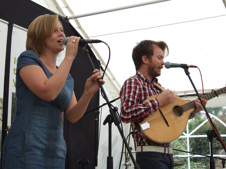 Once again the RSPB Old Moor bird sanctuary in conjunction with the Dearne Valley Green Heart partnership invited a handful of singers and musicians from around the country as well as further a field in order to support an afternoon of fun and music and to raise funds for the nature reserve. The first concert was so successful last year that it only seemed right to continue with a second concert this year and it looks likely that it will become an annual event, certainly if today was anything to go by. Whilst people came from all around and settled themselves in and a round the specially erected marquees, some in the sun, some in the shade, MC Ray Hearne got things off to a great start with the apt “Now I Know Why the Caged Bird Sings”, one of the songs from his remarkable album The Wrong Sunshine. Fortunately we were granted the right sunshine this afternoon as each of the guest acts took to the stage, presided over by Ray, event organiser Marie, who looked after everybody superbly well, and Hedley of course, who looked after the sound for the afternoon, together with a whole bunch of volunteers from the sanctuary providing a warm welcome and excellent catering facilities. Returning once again to support the concert was WW.Combo, a local trio featuring this reviewer, flanked by two giants, Liam Wilkinson who provided two self-penned rights of passage songs, from childhood to adulthood with “Crocodile Island” and “The Land That Never Comes”, whilst bassist/pal Gary Wells took care of the bottom end, all three of us endeavoring not to scare the birds away. Fresh from her successful appearance at the Wombwell Wheelhouse the previous night, and suitably refreshed after being reunited with all her worldly belongings that had unfortunately been missing in transit for almost a week, Seattle-based singer-songwriter Anna Coogan delighted the audience this afternoon with a selection of songs from her current album The Nocturnal Among Us, such as “Back to the World”, “Crooked Sea” and “Coins on Your eyes”. With a clear and distinctive vocal delivery and sensitive guitar accompaniment, Anna also provided a couple of well chosen covers to complete her set. Local musicians Katriona Gilmore and Jamie Roberts provided a sneak preview of what’s to come on their new album, the follow up to the excellent Shadows and Half Light due out in autumn, with complex arrangements of the traditional “The Shepherd and his Fife” and Jamie’s “All I’ve Known”, to the more familiar material from their existing repertoire, Katriona’s heartfelt ode to failing memory “Travelling in Time”, the updated take on one of Stephen Foster’s songs “Susannah” and Jamie’s notes on chronic procrastination in “So Long”. After a short break where real ale and sandwiches was being served by the Old Moor staff, together with the usual mingling of friends, Ray Hearne kicked off the second half with another song from The Wrong Sunshine, the anthemic “Things to Say” going on to introduce each of the final few acts in turn in his usual charismatic and light-hearted fashion. Originally Phil Beer had generously offered his services but was unable to make it to the concert due to unexpected illness. So at short notice the Teeside husband and wife team Megson stepped in to help out. Stu and Debbie Hannah are no strangers to these parts having appeared at the Barnsley Acoustic Roots Festival earlier this year and once again the couple woo’d their audience with a set of thoroughly engaging songs from their steadily expanding repertoire. Performing songs from their new album The Long Shot, including “The Last Man in the Factory”, “Two Match Lads”, “The Cabman” and the title song, with it’s humorous take on something close to this couple’s heart, football, the duo delighted the audience, if not only with their superb musicianship, their good looks or their song writing credentials, then certainly with their beautiful harmonies. Stu and Debbie, in standing in for Phil Beer, not only experienced a warm and receptive audience in the heart of the Dearne Valley, but also took the opportunity to take their pooch Moog for a walk in the beautiful surroundings. Staying with the North East, Jez Lowe was up next to deliver some of the stuff the singer-songwriter is known for; good well-crafted songs for and about the everyman. With “Will of the People”, “The Judas Bus” and “Jack Common’s Anthem”, Jez soon had the audience in the palm of his hand. Like Megson before him, Jez also provided a couple of snapshots of this sporting life with a couple of related songs “It’s a Champion Life” and the “Ex-Pitman’s Pot Holing Club Quiz Team” bringing a smile to the Old Moor audience. Completing an excellent afternoon of fun and music came the dual forces of fiddle maestro Anna Esslemont and percussion genius Cormac Byrne, augmented by Nick Waldock on bass and guitar. It’s virtually impossible to categorise Uiscedwr other than to put them in that box marked ‘special’, a trio whose chief responsibility is to dazzle with their dextrous playing, particularly during one of Cormac’s breath taking bodhran solos. With a set of songs and tunes, although the term ‘tunes’ is fantastically inadequate, the band stopped everyone in their tracks, even the birds, for an hour of deeply intuitive playing. Despite Anna’s Welsh and Cormac’s Irish background, it was lovely to hear Anna praise her newfound home on the outskirts of Holmfirth paying homage to the county she has fallen in love with, with her favourite song “Yorkshire Tea”. The second Voices for Nature concert was once again a success, not only in terms of the musical content and the welcoming attitude of the staff but also in the fact that since last year’s memorable concert, new members from the folk community have added themselves to the Old Moor membership and have found a delightful place to visit, whic