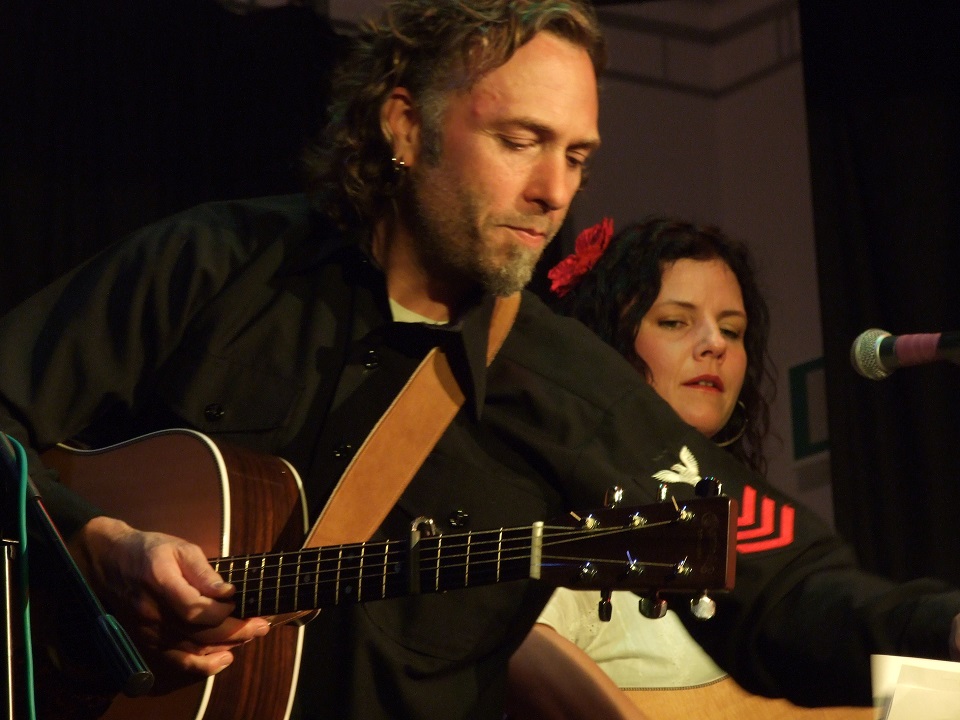 With two highly respected solo careers behind them, Corinne West and Kelly Joe Phelps have joined forces to play a few shows as a perfectly complimentary duo. Tonight, the two musicians reached day five of their current twenty-nine date British tour, playing two outstanding sets at The Rock in Maltby to a predictably packed house. For pre-gig Internet research geeks (this reviewer included of course), the intuitive musicianship came as no surprise, having witnessed their first outing as a duo via their performance at Shoenberg’s Guitar shop in Tiburon, California, where they could be seen performing “Amelia”, “Lady Luck” and “The River’s Fool”, all of which were aired once again tonight. There is no doubting Corinne’s exceptional ear for good guitarists, having already toured the UK with dobro maestro Doug Cox last year. With Kelly Joe Phelps however, the singer-songwriter has not only found a first rate musician to work alongside but has also discovered a kindred spirit, a musician equipped with a clear understanding of her back catalogue of songs. At times during the course of the concert, it was evident that the two musicians were so thoroughly engaged in their highly improvisational musical interaction, especially during some lengthy codas, that the duo may well have temporarily forgotten the audience was there. Their combined love of the acoustic guitar is almost tangible, so much so, that with a little help from the duo’s highly animated performance, sweeping movements back and forth, up and down, it seemed their guitars were sharing a very private and intimate moment, sometimes in mid-air. When Kelly Joe Phelps burst onto the scene some sixteen years ago as a fresh-faced baseball hat with a guitar and with a superb debut album Lead Me On, many of us were knocked out by his bottleneck style guitar playing, a style that has been very much abandoned by this gifted guitarist apart from a brief hiatus on his most current album, the instrumental Western Bell. Despite many calls for its return, Kelly Joe sticks to his chosen path, that of a fine flat pick guitarist, a style that compliments Corinne’s songs superbly well. With many of Corinne’s best loved songs coming out to play tonight, including “Mother to Child”, “Cowgirl Lullaby” and a superb reading of the sublime “Angel” accompanied by some weeping guitar runs by Kelly Joe, the current tour also offered an opportunity for the duo to perform a couple of brand new songs including “Trouble No More”. Finishing with the traditional “Lass of Loch Royale” (If I Prove False to Thee), the couple left the stage without returning, despite calls for an encore. With sixteen songs performed, some familiar, one or two not so, it was probably deemed enough to constitute a perfectly good night of well-crafted songs.