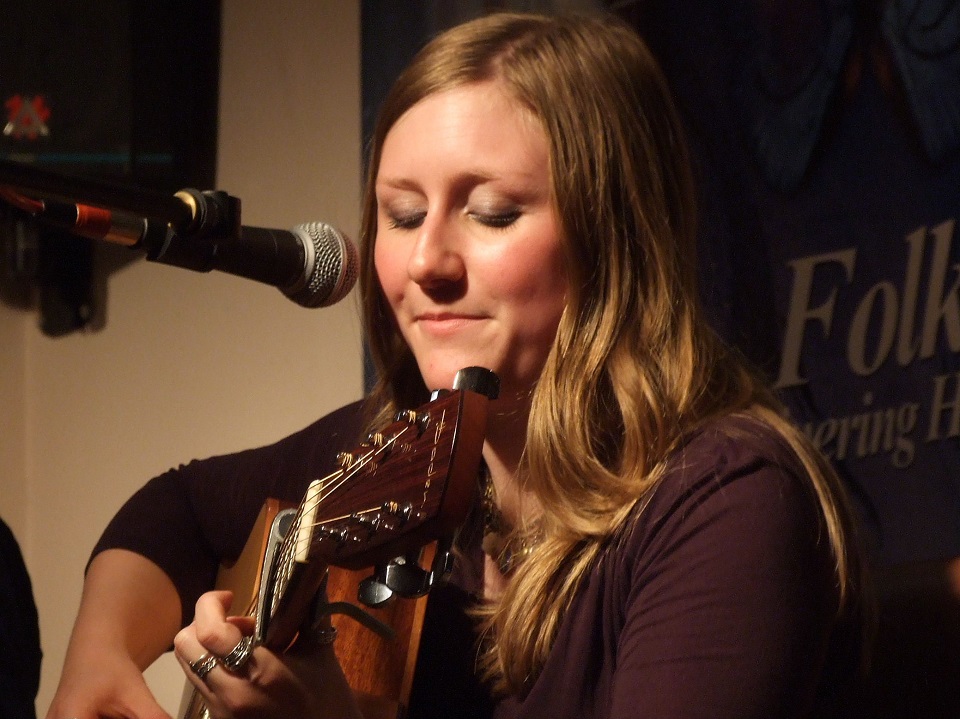 Seattle-based singer-songwriter Anna Coogan arrived at the Wombwell Wheelhouse slightly frustrated by the fact that the airline had managed to lose her suitcase containing all her worldly belongings; well the essentials that a touring musician requires to get through a couple of weeks in a strange country at least. Putting the horrible week thus far behind her temporarily, Anna instantly engaged with her audience tonight, performing songs from her debut solo album The Nocturnal Among Us as well as a few well chosen songs from her impressive back catalogue. Starting with “Back to the World”, coincidentally the opening song from that album, Anna’s distinctive voice filled the little summer house, characteristically alternating between straight singing and falsetto with ease. Perhaps Anna’s operatic training at the Mozarteum in Salzburg prepared her for the confident way in which she delivers a song or maybe it’s the influence of Alison Krauss, whose delicate voice provided Anna with gateway into the world of folk and acoustic music as opposed to her formal training, the threshold of which Anna crossed with some considerable ease. Whilst “Dreaming My Life Away” demonstrates Anna’s command over melodic pop songs, it’s with the more thought provoking songs such as “Crooked Sea” that Anna excels. The little promotional video Anna made for this song, filmed in the back of a VW bus, being probably the smallest imaginable house concert in the world, was probably more than anything else responsible for Anna’s Wheelhouse appearance tonight, Hedley Jones having seen the video, knowing how well that performance would transfer to his garden shed. Originally from New England, it’s little wonder that the sea takes a major role in Anna’s growing repertoire. From a community that shares some of the maritime music of Nova Scotia, it seems only second nature for her to include the likes of Gordon Lightfoot’s haunting “The Wreck of the Edmund Fitzgerald”, which evokes the hazardous and unforgiving legends of the Great Lakes to the traditional “Golden Vanity”, which also demonstrates Anna’s fluent handling of traditional material. Inspired by Truman Capote’s In Cold Blood, “Indian Summer” deals with the darker side of human nature, picking up on one infamous murderer’s Native American background, as chronicled in Capote’s celebrated true life novel. Written after reading the book alone, Anna confesses that it made her quite nervous for an entire weekend. Despite Anna’s other nervousness, that of driving alone in a strange country, suffering from insomnia and having her suitcase in transit God knows where, the singer cheerfully tells of picking up some clothes as a temporary measure from an Edinburgh charity shop, namely Pets Need Vets, reasoning that pets are getting their vets whilst she is getting a change of clothes. Anna remained professional, engaging and cheerful throughout. Anna also provided a couple of new songs in her set, one of which was described as being under construction ‘with scaffolding all over it’, destined hopefully for a follow up to The Nocturnal Among Us. Towards the end of the night, Anna brought out a couple of stunning songs from the new album Coins on Your Eyes and the beautiful “Holy Ghost of Texas”, a song that first appeared on her Glory album, revamped and re-vitalised for the new record, which together with a pretty faithful version of Springsteen’s evocative “My Hometown” made for a memorable set at the Wheelhouse.