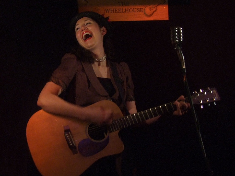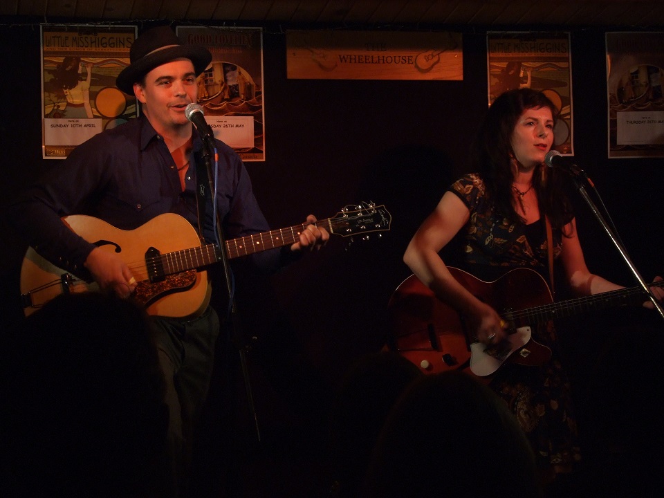 There was a lot in the way of ‘littles’ tonight. From the little town of Nokomis in the province of Saskatchewan, Canada, Little Miss ‘Jolene’ Higgins made her debut at the little Wheelhouse, bringing a taste of vaudeville style entertainment to the popular venue, filling the room with her strong and distinctive jazz-flavoured voice, mixing her own material with classic Memphis Minnie blues songs. There’s nothing little about that voice though, which dominated the house concert, whilst partner Foy Taylor provided the rhythm guitar and backing vocals throughout. With vintage guitars in hand and at the ready, Jolene and Foy performed songs from the Little Miss Higgins catalogue, including a selection from her last record Junction City (2007) including “That Train’s a Comin’ Down”, “Velvet Barley Bed”, “In the Middle of Nowhere” and the wonderfully confrontational “Liar Liar”. Much of the set though centred around Little Miss Higgins’ current album Across the Plains, with arguably some of her best songs to date such as “The Tornado Song”, the unaccompanied “Gather My Fruit”, “Snowin’ Today: Lament for Louis Riel” and the surprise ‘hit’ and live favourite “Bargain! Shop Panties”. There was also a couple of well-chosen Memphis Minnie songs included, both of which clearly showed Jolene’s roots; “You Ain’t Done Nothing To Me” and “Killer Diller”. With some entertaining between-song banter with the audience, which centred around Jolene’s Alberta background, her travel exploits and beer, together with an evenly balanced mixture of country-flavoured ballads, juke joint blues numbers, rockabilly stompers and jazz-tinged crooners, Jolene presented a couple of sets that makes her act difficult to categorise. During the old Bessie Smith blues classic “Me and My Gin”, Jolene requested a shot glass from the bar for some spontaneous bottleneck slide playing. Not to waste the opportunity, Jolene also requested that the glass be filled with gin. Andy the barman dutifully handed over a couple of gins, one of which our host Hedley Jones had to ‘feed’ to Foy Taylor, whilst he continued playing his guitar, not missing a beat. The other one was down Jolene’s neck in one, then explored the neck of her guitar for the remainder of the song. Finishing with “Romance in the Dark”, a much older song which appeared on Jolene’s debut album Cobbler Shop Sessions (2005), Little Miss Higgins left both the stage and a lasting impression on the Wombwell audience. Continuing the theme of all things little, the support came in the form of 14 year-old Mia Symonds, a tiny frame with a massive talent, who performed a handful of songs, including KT Tunstall’s “The Other Side of the World”, Beyonce’s “Smash Into You” and the Jason Mraz hit “I’m Yours”, together with the achingly personal self-penned song “Closer”, extraordinarily mature lyrics for one so young. I’m certain we’ll hear a lot more from Mia in due course.