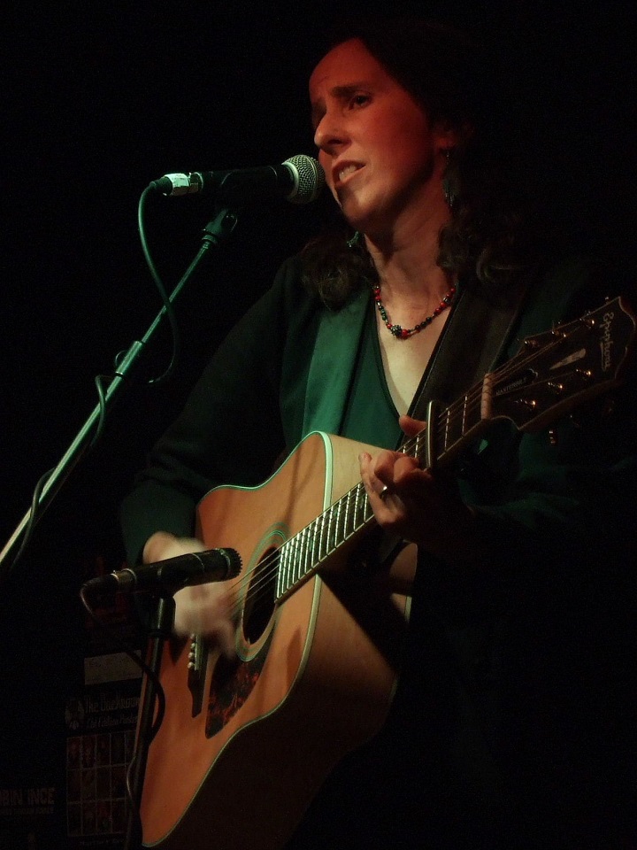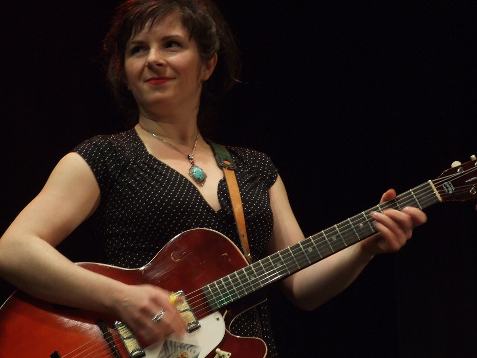 A bit of a coup for the little Wheelhouse in Wombwell tonight, as Devon Sproule stopped over for a one-off house concert, fresh from her appearance at the Tallinn Music Week in Estonia, which took place over the weekend. Playing solo, the Charlottesville, Virginia-based singer-songwriter showcased each and every song from her new as yet to be released sixth studio album I Love You, Go Easy due out on general release sometime in May. Dividing her two sets tonight between the established repertoire in the first half, leaving the brand new songs for the second, Devon eased herself into the first set with the jazz inflected “Let’s Go Out”, gently picking and strumming her prized 1954 f-hole Gibson throughout. Relaxed enough to ask the audience to shout up any particular song they wished to hear, Devon went on to perform material from her back catalogue and in particular her last two studio albums Keep Your Silver Shined (“Stop By Anytime”, “Keep Your Silver Shined”, “Old Virginia Block”) and Don’t Hurry for Heaven (“Ain’t That the Way”, “Julie”, “Don’t Hurry For Heaven”) as well as a couple of older songs, including the gorgeous “Plea For a Good Night’s Rest” from her Upstate Songs period. The first of the new songs “The Warning Bell” appeared during the first set, which Devon explained was an updated version of “Hang on the Bell Nellie”, learned from an old song book entitled Rise Up Singing. This was a brief hint at what was to come in the second half. With a strong, if sometimes vulnerable voice, never afraid to go for the note that her characteristically frail voice could never actually reach, the singer’s reputation as being a slightly eccentric singer came across loud and clear; but that’s precisely what makes Devon Sproule different, special, interesting and unique. The only non-original song played in the first half was The Beatles’ “The Night Before”, which Devon prefaced by admitting some self-indulgence, a song previously heard as an instrumental played on many occasion beside husband Paul Curreri. It was brave of Devon to reveal every song from her forthcoming album one after the other in the second half, particularly in view of the fact that the new songs show a marked shift in direction for the songwriter. Describing the new material as minimalist, a little simpler and more personal, Devon seems to have dropped the highly melodic song structures for a more stripped-down meditative approach to song writing, highlighting her vulnerability as a singer even more than before. Despite the first set being for all intents and purposes an overview of her career so far, with some of the singer’s best loved songs, it was the second set that pushed the boundaries, which in turn challenged the senses, with some of the most daring songs of her career thus far. With song titles such as “I Love You, Go Easy”, “Monk/Monkey” and get this, “The Evening Ghost Crab”, Devon Sproule is all set for the next phase in an already extraordinary career. The new album is made up entirely of Sproule originals except for “Runs in the Family”, written by Terre Roche and “Body’s in Trouble” by Mary Margaret O’Hara. Devon also performed “Flowers (Eurydice’s Song)”, one of the songs from the new ‘folk opera’ Hadestown, written by Anais Mitchell, which retells the Orpheus myth. Finishing off with something more conventional, the old Nina Simone song “My Baby Just Cares For Me”, Devon certainly left an impression and served up some food for thought.