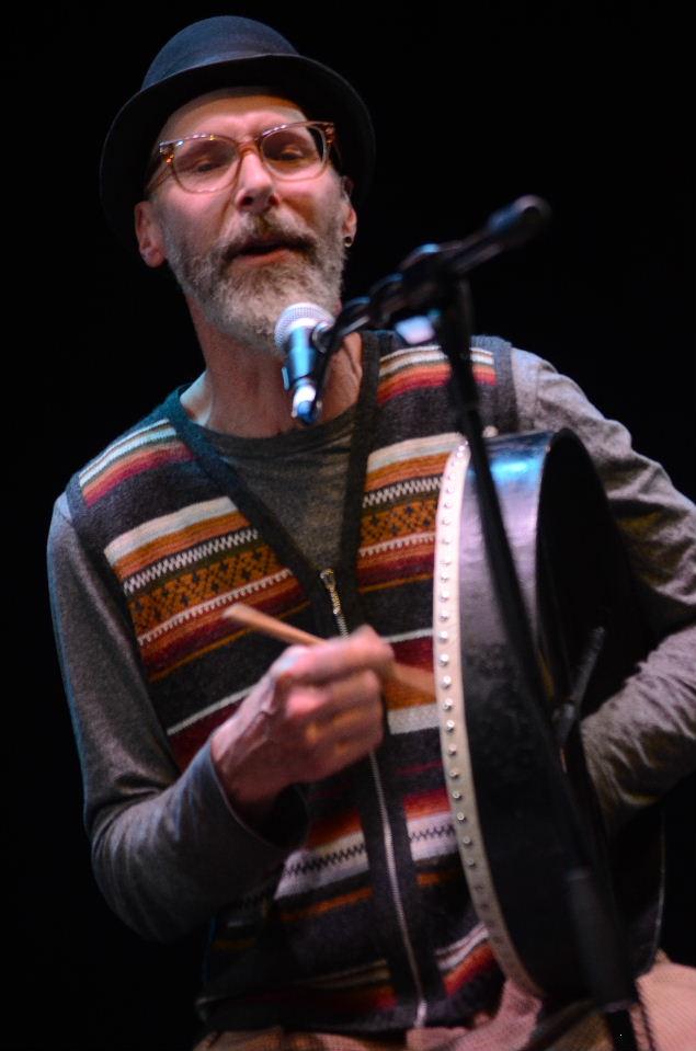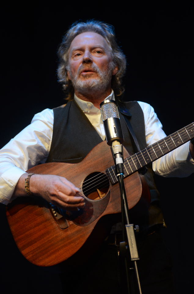 Three things spring to mind when sitting before such a pairing as Steve Tilston and Reg Meuross, two highly accomplished British singer songwriters; first admiration, followed by satisfaction and then chronic envy. I have great admiration for these two musicians, first and foremost for the memorable songs they’ve each brought to the table over the years, but also for their good table manners as well; they’re both pleasant chaps, enjoyable to listen to and good to chat to at the same time. I’m always satisfied whenever I hear their songs, both new and old, each gathered from their combined prolific repertoire and also satisfied with their constant pursuit of new ideas for songs. Envy? Well, it’s not so much that I envy their talent, but rather that I turn a slightly wearisome shade of green when I plainly see that they can still grow their hair long enough to be cool, despite both being a good bit older than I. But that’s something I will just have to live with. For the second half of tonight’s concert the two musicians sat beside one another and democratically shared their songs, with a little additional banter in between. Hugh Bradley, Steve’s double bassist, hadn’t heard any of Reg’s songs until tonight, but after a couple of bars, he soon found his stride on each song, all of which benefited from the additional lift. In places Steve added some improvised (yet informed) guitar accompaniment on Reg’s songs and vice versa, though Reg was willing to concede defeat during some of Steve’s more complex arrangements. The first half however, was shared between the two musicians, the order simply decided upon by the toss of a coin, of who would be batting or bowling, to use MC Jonti Willis’s cricketing analogy. Reg was first up and within a matter of minutes had introduced us to a variety of characters both real or imagined and in some cases real and imagined. There was Elvis and Phil Ochs, William Morris and Tony Benn, Emily Davison and Lillian Bilocca, not to mention the Mayflower passenger William Brewster, together with four of his unlikely named sprogs, Patience, Love, Fear and Wrestling! Notable human beings popped into the conversation as frequently as figures in a Lowry painting. Some of that green envy arose once again when Reg casually dropped into the conversation the fact that he had attended Joni Mitchell’s Festival Hall concert almost fifty years ago to the day, whereupon the young Canadian performed her entire Blue album, which would leave anyone envious really. Inspired by that concert and that songstress, Reg turned to his own mountain dulcimer to conclude his portion of the show with a song from his recent 12 Silk Handkercheifs project, “I am a Fish House Woman”, before handing the stage over to Mr Tilston. Steve’s set was relatively devoid of specific characters in favour of a more universal set of songs, drawn from life and nature, “Oil and Water”, the song he performed on Jools Holland’s Later a few years ago for instance, then “Weeping Willow Replanted”, Steve’s homage to “Weeping Willow Blues”, a song from the repertoire of his old pal Wizz Jones, whose significant birthday party Steve had recently attended and performed at. Then there was “Rare Thing”, one of Steve’s most memorable songs, together with the thoroughly gorgeous “The Road When I Was Young”, an observation shared by many (if not everyone) in the room, before closing the first set with his own homage to Scotty Moore with “My Mystery Train”. As a treat for their audience here at the CAST Theatre’s intimate ‘second space’, the two musicians agreed to share the stage for the final hour, both seated throughout the nine song set, each interspersed with stories and anecdotal reflections. Neither Steve nor Reg appeared completely relaxed throughout the set, but this made for some ‘edge of the seat’ moments, as the two musicians strove to ‘up’ their game. Included in the set was the first song from Steve’s debut record back in 1971 “I Really Wanted You”, recently revisited on Steve’s current album Distant Days, whilst also including a couple of brand new songs, notably “Satellite’s Decree”, a complex little number, after which Reg quipped “I didn’t know there were so many chords”. More characters emerged during this set courtesy of Reg, notably Dylan Thomas and Hank Williams in “Leaving Alabama”, Sophie Scholl, the German anti-Nazi political activist in “For Sophie (This Beautiful Day)” and an veritable litany of geographical characters in the streets and alleyways of London in the ever controversial “My Name is London Town”. Concluding both the set and the show, Reg encouraged some audience participation as the three musicians returned to the stage for the biting, yet hopeful “England Green, England Grey”, bringing an end to a really enjoyable and memorable concert.