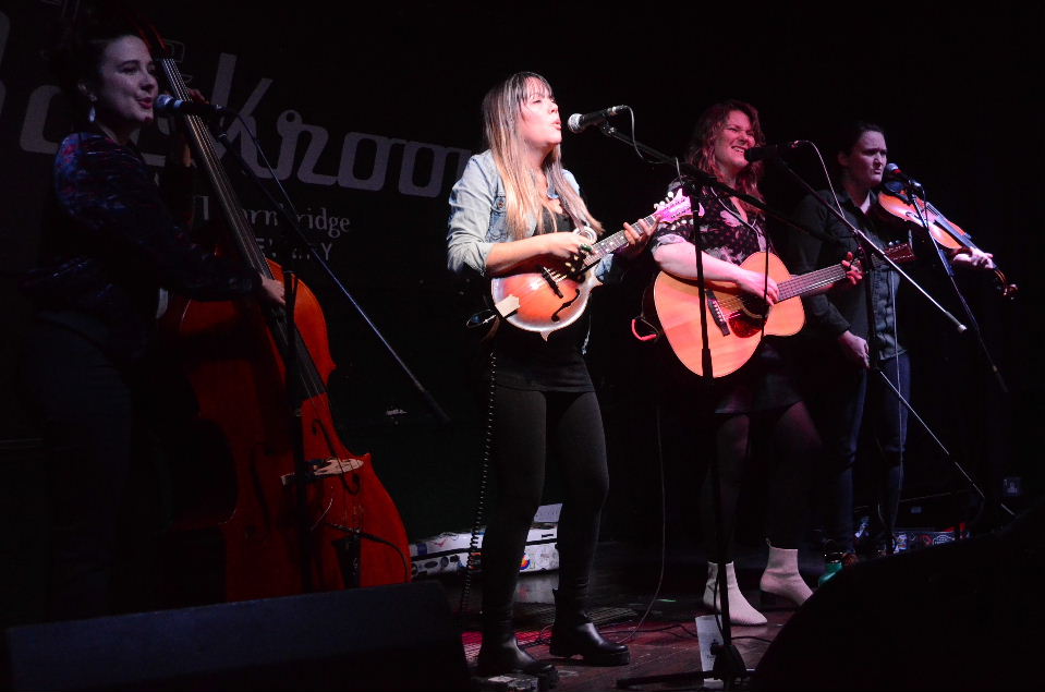 Despite having been around for over ten years now, many in the audience tonight were probably new to the Della Mae live experience and most were definitely new to the all-female quartet’s latest album release Headlight, which was given its official release just a week ago. By the end of Della Mae’s set however, the audience and band were on first name terms. Fronting the band was Celia Woodsmith, a solid and dominant figure, with a voice to match, the Loretta Lynne of the Me Too movement perhaps? Then there’s the two founder members, the sardonic fiddle player Kimber Ludiker, whose dry sense of humour grounds any potential chancer vying to get the better of her, to the quietly beguiling and enigmatic Jenni Lyn Gardner, whose lightning fingers understand a mandolin fretboard better than an Inuit understands snow. Jenni Lyn has been traversing the neck of her instrument since the age of eight and therefore she’s had plenty of practice. Finally, there’s the newbie, Kentucky’s very own Vickie Vaughan, whose double bass and harmony vocal lights up the band like a beacon. This is Della Mae, a force to be reckoned with. After an all too short opening set by Cheshire’s Jaywalkers, namely Jay Bradberry, Mike Giverin and Lucille Williams, which included a bunch of songs from the trio’s current album Time to Save the World, Della Mae opened their set with some fine country folk in the form of the lilting “Bluebird, Blackbird”, a good choice for a starter, in which each of the musicians took the opportunity to flex their respective chops and to find their feet. As a prelude to revealing one or two songs from the band’s brand new album Headlight, Della Mae trawled their back catalogue and delivered one or two solid performances of such old favourites as “Polk County”, “Down to You” and “The Most” from their debut album I Built This Heart. More recent material from last year’s collaborative EP The Butcher Shoppe was included, songs such as “Bourbon Hand” and Lester Flatt’s memorable “Sleep with One Eye Open”, both of which features very excellent Molly Tuttle on the recorded versions, together with Avril Smith and Alison Brown respectively. Such songs were delivered on cue by a band who was very much intent on making a Saturday night sound very much like a Saturday night. There was an unexpected energy in The Backroom, which made the Nashville-based musicians feel at home, an energy augmented by an abundance of whoops and whistles from the audience throughout the set, which seemed to get louder and more determined as the night went on. It was a mutual exchange, whereupon the band brought to Sheffield the essence of some of the better off-Broadway venues, while the audience responded by bringing some of that sort of atmosphere to this fine Sheffield venue. Jenni Lyn’s mandolin flourishes garnered the most enthusiastic response, in fact the musician was approached at the end of the night by a new fan, eager to tell the musician how much she enjoyed the “diddly doodlin’ on her ‘thing’”. If there was indeed one or two young people in attendance who have no clue as to what a mandolin is, then there were many who did know and those who actually owned one were probably eager to get home and take a hammer to it after witnessing some of Jenni Lyn’s staggeringly dexterous performances tonight. After being introduced as “not only the most joyful member of the band, but probably the most joyful person in the world”, Vickie Vaughan took the spotlight for a rousing reading of the old Creedence Clearwater Revival hit “Up Around the Bend”, to an enthusiastic reception from the audience, with John Fogerty’s ear worm guitar riff ingeniously transferred to Jenny Lyn’s mandolin. After over twenty songs and tunes, including a couple from the new album such as the honky tonk foot-tapper “First Song Dancer” and the heartfelt “I Can’t Pretend”, Della Mae showed no signs of slowing down, their energy levels and consistently solid performances as good at the end as they were at the beginning, with an audience in no hurry to see the show reach its inevitable climax. After returning to the stage for a little Merle Travis and probably his best known song “Sixteen Tons” together with a fine instrumental workout “No See Un Stomp”, the band left Sheffield with a fine little rock ‘n’ roller for the road before leaving the stage with a promise to return some time soon. For me, it won’t come soon enough.