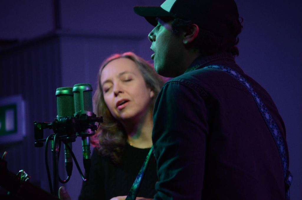 Julu and Heg originally planned to visit Doncaster for the first time last year, but their plans were thwarted by Covid intervention, having had to postpone their appearance rather than cancel it, their determination to play for the Roots Music Club at some point undeterred. Tonight, the two musicians arrive on a wet and grey evening, not only to play at the Roots Music Club for the first time, but also at an alternative venue to the usual one (the Ukrainian Centre). Shortly after their arrival at the Hyde Park WMC, the room fills with Suthering’s unique sound as the sound check reveals something very special.