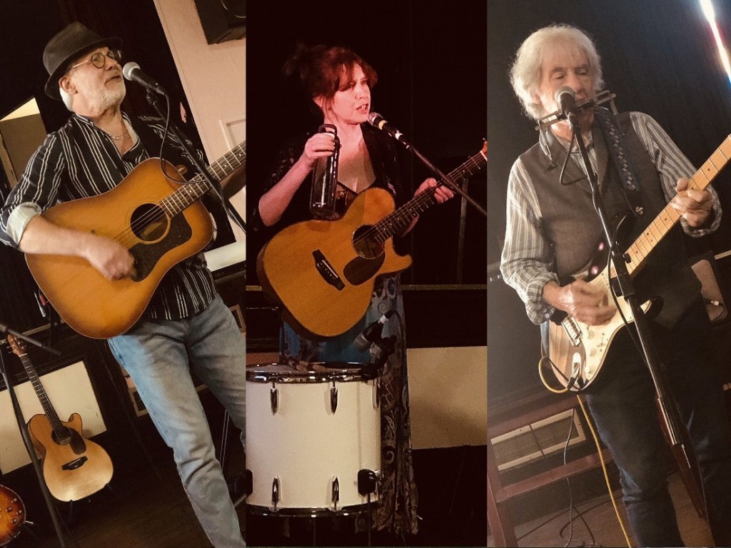 There’s at least a couple of good reasons for popping along to the Roots Music Club tonight, the second to be held at the Hyde Park Club in Doncaster. Sarah McQuaid is certainly one of them, but also Mick Jenkinson, who partners up with long-time collaborator Kev Fitzpatrick for the premiere of a handful of songs from his newly released debut solo album When My Ship Puts Out to Sea. In fairness, one or two of these songs have already been performed recently in other local venues, but tonight sees the Doncaster singer, songwriter and poet give it all before friends and peers, with a set that includes such new songs as “Knoydart (Walk Down With Me)”, “Don Navigation Blues” and the title song “When My Ship Puts Out To Sea”. It doesn’t take long for Mick and Kev to settle into a comfortable set, two musicians working in tandem with that same telepathy we’ve seen before in musicians who’ve worked together for more years than it’s necessary to mention. The country-influenced “Alcohol & Heartache”, co-written by the poet Ian Parks, who is also present in the audience tonight, takes the mood in one direction, which prepares us for Mick’s live debut of “Lockdown Blues No 1”, which takes us in another, before finishing with “The Lowering Down”, a poignant conclusion to a fine set. The night was originally conceived as an intimate performance, to be staged in the smaller lounge room of the club, yet it seemed necessary to relocate to the larger concert hall, due in part to Sarah McQuaid’s impressive and somewhat space-filling musical arsenal, which includes a couple of guitars, a keyboard, a drum and an additional box of tricks at her feet. Sarah’s voice is in a strange way reminiscent of that of Bridget St John, a familiar voice from several decades earlier, a deeply resonant voice that perfectly suits this sort of material. On stage Sarah can charm, is openly friendly and performs with some determined conviction. With more than a little help from her sound tech, Sarah’s looped voice and multi-tracked instrumentation can at times develop into an orchestra of sound, all of which enhances rather than clutters. Drawing from an impressive repertoire of songs from her back catalogue, together with one or two more recent songs, such as “If We Dig Any Deeper It Could Get Dangerous”, Sarah performs as if to a packed room, which is in reality sadly sparse tonight. Included in the set are one or two notable covers, including Bob Dylan’s “Tangled Up in Blue” and John Martin’s “Solid Air”. It would have been nice to have had a few more people in the audience, but the three musicians on stage tonight perform like troopers.