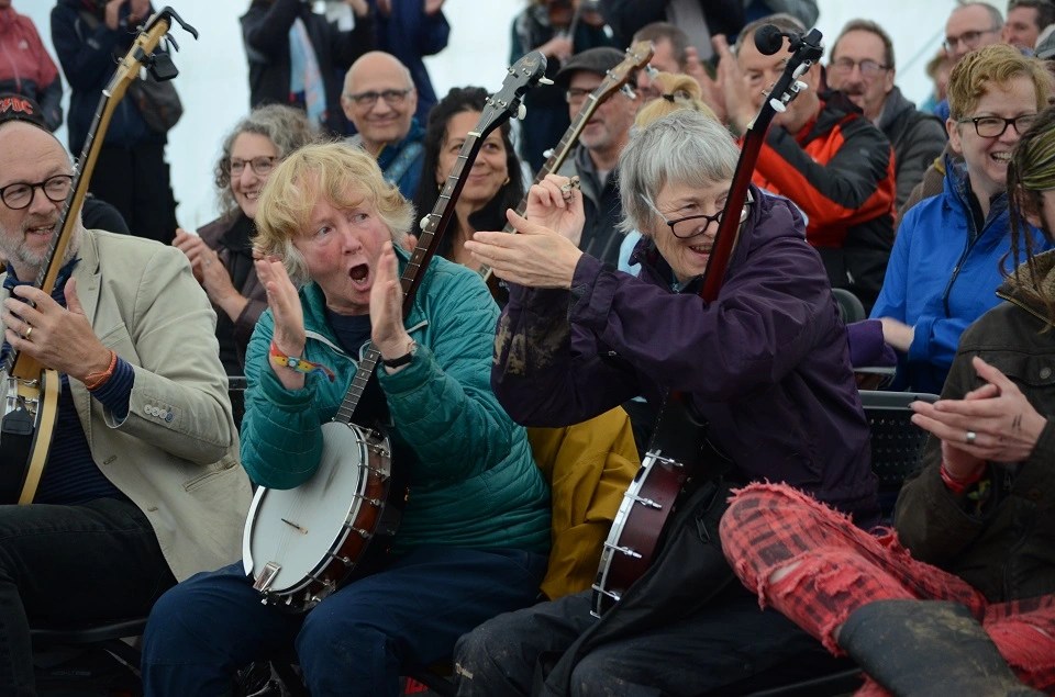 The second day at a festival traditionally begins late, usually as a result of the previous night’s excesses, and in the case of Saturday morning, the threat of heavy rain heading in from the west. It’s already muddy underfoot but manageable with a good pair of boots or wellies. One couple defies the rain by partaking in ‘precipitation ping-pong’, while the wise participate in a bluegrass workshop, each participant bringing along their banjos, mandolins and the odd saxophone. While other early risers enjoy a spot of communal exercise, The Deep Blue demonstrate, for want of a better expression, ‘girl power’, on the Little Lights stage, the song “Cotton White Linen” alone worth getting up early to hear. The song is unexpectedly reprised later in the day when the band return to the stage to stand in for Holy Moly and the Crackers, who are unable to appear due to illness. With gorgeous harmonies throughout their set, these four Manchester-based singers and musicians brighten up an otherwise dreary looking day. Meanwhile on the Planets stage, it’s a festival of spring chicks as the Barnsley Youth Choir gives us the first glimpse of our future local stars, a family moment enjoyed by all present.
