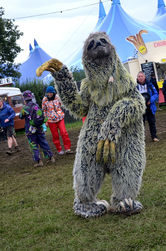 Come Sunday morning, it’s pretty much down with the brollies and up with the parasols as the sun returns to sprinkle a blanket of joy on the farm. The rain may have dampened the ground earlier, but certainly not any of the stargazer’s spirits, as the final day begins with more superb music. The Oxford-based The People Verses, featuring the highly expressive singer Alice Edwards, appears to woo the campers awake in the sleepy field next door, and like The Deep Blue previously, the band herald in another promising day. Bluegrass musicians jam together in the open spaces, as a seven foot sloth wanders around the site, hugging kids and adults alike, while the Toulouse-based eight-piece Super Panela brings a taste of the rhythms of the Caribbean and the pacific coasts of Colombia to Barnsley. What better way to bring sunshine to the eyes and ears of sleepy stargazers.