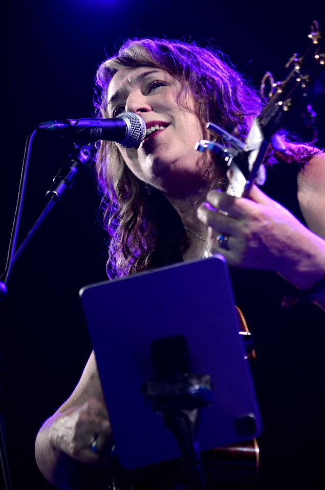 As the two musicians settle into their first set, while our ears become accustomed to the volume these three mics, making the performance sound as acoustic as possible, almost as if they’re playing in our respective living rooms, the songs and tunes begin to flow. There are songs and tunes from Sierra’s most recent album 25 Trips, notably “Beautifully Out of Place”, “How Long” and “Last Minute”, not to mention the gorgeous “Ceiling to the Floor”, where this reviewer empathises completely with Sierra’s fear of heights, though this doesn’t prevent me from perching myself on the balcony for the show. One or two older songs also come out to play, “Best Buy” for example, which sees Sierra in a playful mood, in fact everything about tonight’s performance is playful, joyful and uplifting, matched always by Sierra’s infectious smile and engaging personality. Paying tribute to those who have gone before, it’s rather pleasing to hear the duo’s take on Doc Watson’s “Walk on Boy”, with the Doc’s memorable voice echoed in this fine rendition. After various cancellations, postponements and reshuffles, this eagerly awaited appearance by the duo has been very well worth the wait.